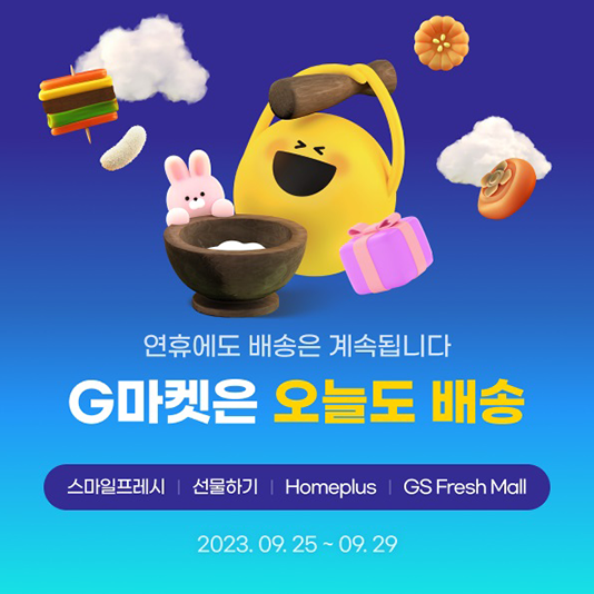 G마켓, ‘오늘도 배송’ 프로모션…연휴 직전 당일·새벽배송 박차국내 대표 온라인 마켓플레이스 G마켓은 25일부터 29일까지 5일 간 ‘오늘도 배송’ 프로모션을 열고, 선물세트부터 제수용품까지 당일·새벽배송 상품을 할인 판매한다. ‘선물하기’ 구매 고객을 대상으로 순금 증정 이벤트도 진행한다.