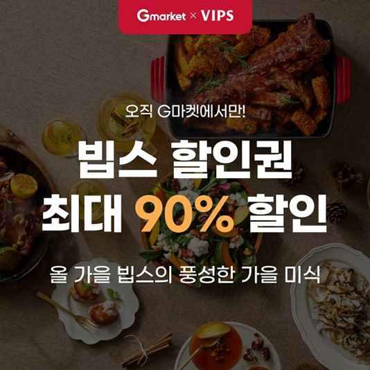 G마켓, 빕스 가을 신 메뉴 할인권 90% 특가국내 대표 온라인 마켓플레이스 G마켓이 10월 1일까지 ‘빕스 할인권’을 90% 할인가에 판매한다. 21일부터 사용 가능한 가을 신메뉴 할인권으로, 약 일주일 간 G마켓에서 단독 선론칭 한다.
