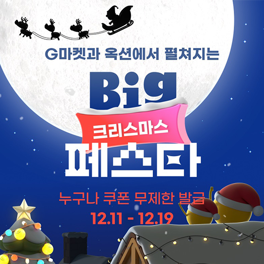 “무제한 쿠폰 산타가 왔어요”… G마켓, ‘크리스마스 빅페스타’ 오픈국내 대표 온라인 마켓플레이스 G마켓과 옥션이 오는 19일까지 ‘크리스마스 빅페스타’를 열고, 인기 유아동 선물 아이템을 최대 70% 할인가에 판매한다. 이번 행사는 레고, 아이코닉스, 해즈브로, 영실업, 피셔프라이스 등 총 14개 브랜드사가 참여해 상품경쟁력을 높였다. 여기에 장난감, 유아동 의류, 출산/육아, 게임 등 관련 카테고리의 시즌 인기 상품을 엄선했다.