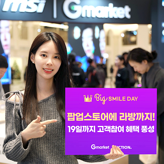 G마켓, 빅스마일데이 마감임박… ‘빅쓱데이’로 더 크게 즐긴다국내 대표 온라인 마켓플레이스 G마켓과 옥션이 ‘빅스마일데이’ 종료 3일을 남겨두고 라이브방송 및 오프라인 현장 이벤트 등 고객 참여 소통을 강화한다. 주말까지 ‘최저가 도전 상품’도 총 24개 선보일 예정이다.