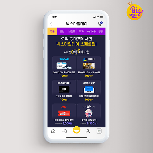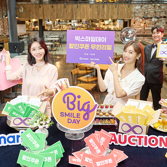 “무한리필 쿠폰에 슈퍼쿠폰까지”… G마켓, ‘빅스마일데이’ 카운트다운국내 대표 온라인 마켓플레이스 G마켓과 옥션이 6일(월)부터 진행하는 연중 최대 할인행사 ‘빅스마일데이’를 앞두고 무제한 ‘15% 할인쿠폰’ 및 매일 ‘20% 할인쿠폰’ 등 쿠폰 스펙을 추가 공개하며, 본격 카운트다운에 돌입했다.