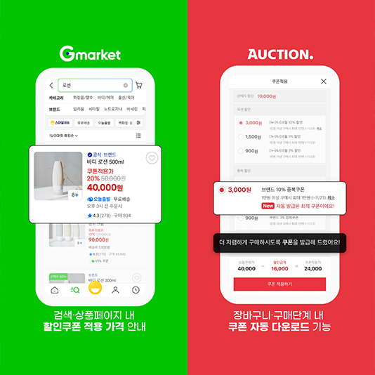 G마켓, 똑똑해진 ‘빅스마일데이’…구매동선 간소화국내 대표 온라인 마켓플레이스 G마켓과 옥션이 오는 11월 빅스마일데이를 앞두고 ‘할인쿠폰 적용가’ 서비스를 확대한다. 고객이 챙기지 못한 쿠폰까지 인공지능(AI) 기반 서비스가 대신 체크해 최적의 할인가를 안내하고 자동 다운로드 기능까지 제공한다.