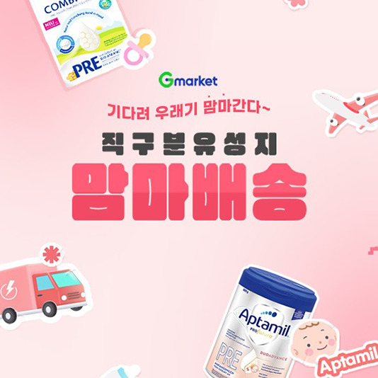 G마켓, 수입분유 빠른 배송서비스 ‘맘마배송’ 오픈국내 대표 온라인 마켓플레이스 G마켓과 옥션이 수입분유 당일출고 서비스 ‘맘마배송’을 오픈한다. 해외직구 상품으로, 주문 후 일주일 이내 상품 수령이 가능하다.