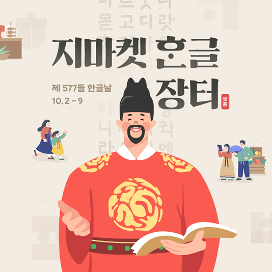“지시장에 장보러 오세요”… 지마켓, 9일까지 ‘한글장터’ 기획전국내 대표 열린 장터 지마켓과 옥션이 한글날을 맞아 오는 9일까지 ‘한글장터’ 기획전을 열고, 한글 이름의 상표와 상품을 모아 최대 60% 할인 판매한다.