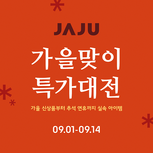 신세계인터내셔날, 자주(JAJU) 가을맞이 특가대전 진행, 추석 선물부터 신상까지 최대 35% 할인신세계인터내셔날의 라이프스타일브랜드 자주(JAJU)가 추석 대목을 앞두고 이달 14일까지 가을맞이 특가대전을 진행한다. 명절 준비에 필요한 주방 및 생활용품 등 총 600여종의 상품을 최대 35% 할인된 가격에 판매한다고 밝혔다.