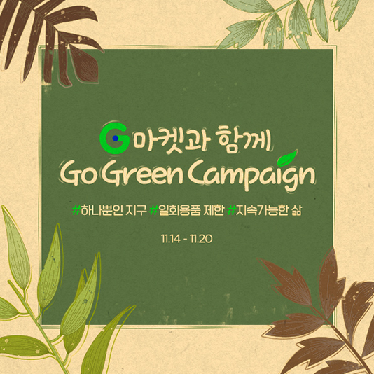 국내 대표 온라인 마켓플레이스 G마켓이 오는 20일까지 친환경 캠페인 ‘고 그린 캠페인(Go Green Campaign)’을 진행한다.