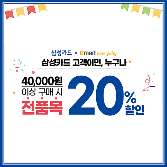 ㈜이마트에브리데이(대표이사 김성영)가 7월 1일부터 3일까지 3일간, 모든 삼성카드 고객들에게 전 품목 20% 할인 혜택을 제공한다.