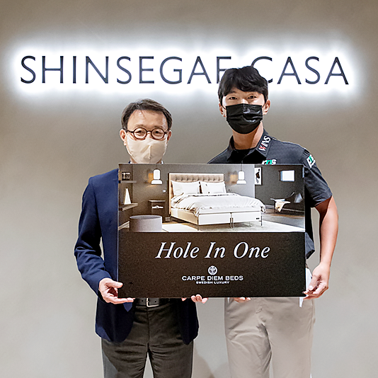 신세계까사, 프로골퍼 옥태훈 “행운의 홀인원, 부상으로 럭셔리 침대 받아 기쁨이 두 배!”5일 신세계까사 본사에서는 지난 한국프로골프(KPGA) 코리안투어 SK텔레콤 오픈에서 공동 3위의 우수한 성적과 함께 홀인원을 기록한 옥태훈(23∙PNS홀딩스)의 홀인원 부상 증정식이 진행됐다. 이날 행사에서 옥태훈은 까사미아에서 독점 수입 판매하는 스웨덴 럭셔리 침대 브랜드 ‘카르페디엠베드’의 3천만 원대 제품 ‘하르마노’ 세트를 받았다.