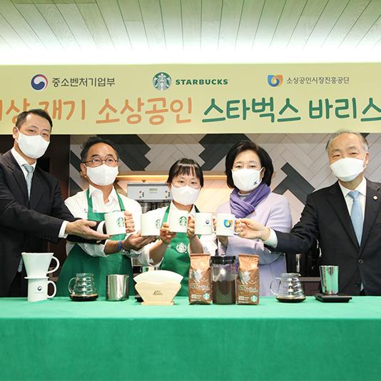 ㈜스타벅스커피 코리아(대표이사 송호섭)가 중소벤처기업부(장관 박영선), 소상공인시장진흥공단(이사장 조봉환)과 함께 대한민국 40대 이상 소상공인의 카페 창업과 스타벅스 취업을 지원하는 ‘스타벅스 리스타트 지원 프로그램’에 뜻 깊은 결실을 맺었다.