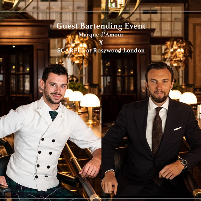 레스케이프 호텔 게스트 바텐딩 진행레스케이프 호텔은 로즈우드 호텔 런던 스카피스 바의 디렉터와 헤드 바텐더인 마틴 시스카와 얀 보우비니이스 바텐더를 초청해 사랑의 징표라는 의미를 담고 있는 ‘마크 다모르 바이 라망 시크레’의 막심 로크만과 함께 게스트 바텐딩’을 9월 26일(목)과 27일(금) 양일간 진행한다.
