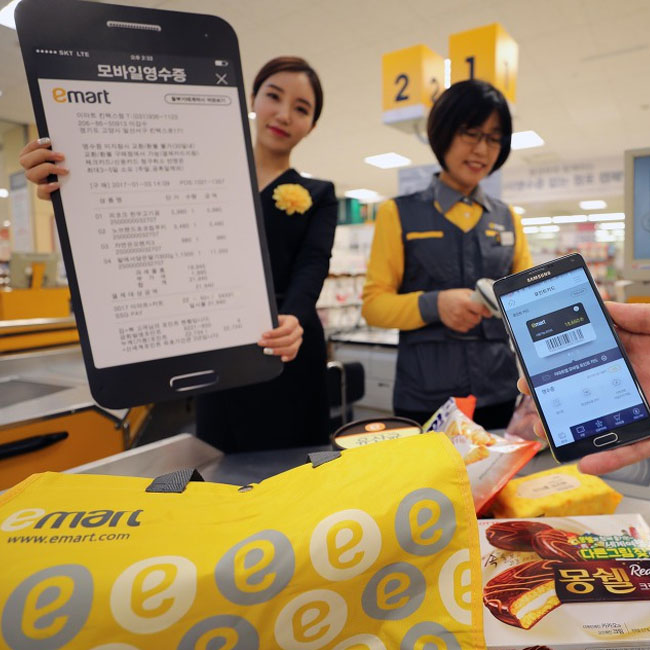 자원낭비와 환경오염을 막기 위해 이마트를 비롯, 신세계그룹 5개사 1,962개 매장이 진행한 ‘모바일 영수증’ 캠페인이 1주년을 맞았다.