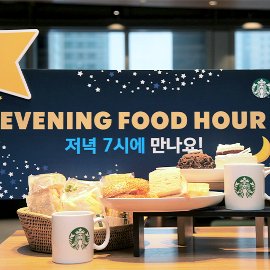 스타벅스 ‘이브닝 푸드 아워’ 시행 첫 날 동시간대 판매 2배 이상 증가스타벅스 코리아(대표이사 손정현)는 지난 4월 4일부터 오는 5월3일까지 한 달 동안 진행하는 저녁 7시 이후 최대 50%에서 30%의 푸드 할인 행사에 많은 고객들이 호응하며, 시행 첫 날 해당시간대 판매량이 평년대비 130% 증가했다고 밝혔다.
