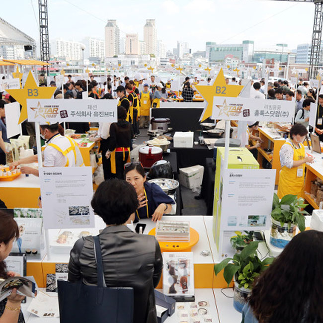 ‘2019 이마트 스타상품 프로젝트’ 개최이마트가 올해로 6회차를 맞는 ‘2019 이마트 스타상품 프로젝트’를 19일(목) 오전 10시부터 17시까지 서울 경동시장 신관 노브랜드 상생스토어 옥상에서 개최했다. 이 날 행사에는 전국의 전통시장 상인과 청년상인, 중소기업 등 총 69개 업체(팀)이 참가했으며, 이마트는 이들의 우수 상품을 발굴해 단계적으로 판로 확대를 지원함으로써 향후 스타상품으로 육성할 방침이다.