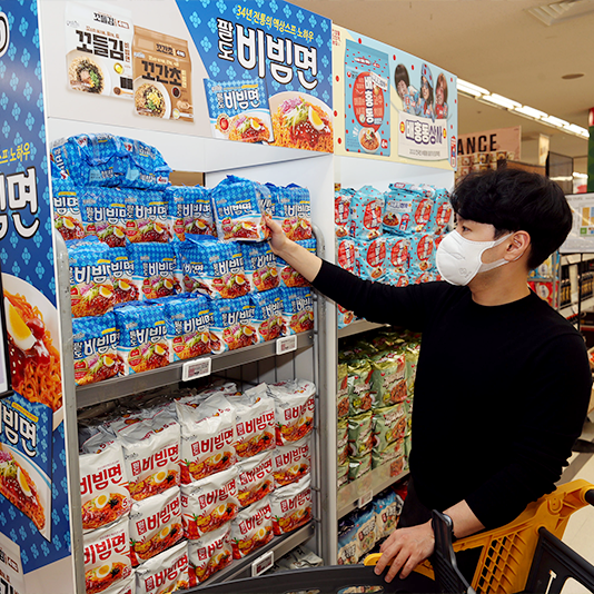 팔도 비빔면 8배 매운 맛부터 오뚜기 열라면·진짜쫄면 콜라보 상품까지 이마트가 본격적인 비빔면 시즌(5월~8월)을 맞아 오는 5월 12일(목)부터 6월 1일(수)까지 팔도/농심/오뚜기/삼양/풀무원 등의 비빔면 16종 전품목을 최대 35% 할인 판매하는 ‘비빔면 전품목 할인전’을 진행한다.