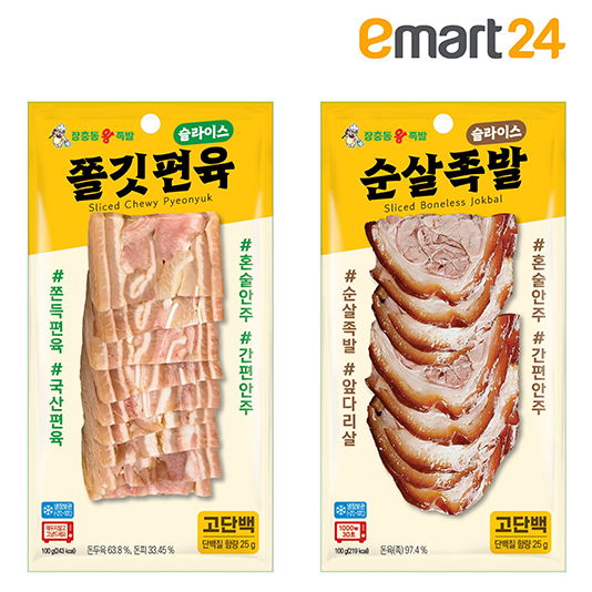 이마트24가 편육/족발 전문업체 ‘장충동왕족발’과 손잡고 소용량 ‘슬라이스쫄깃편육’과 ‘슬라이스순살족발’을 선보인다.