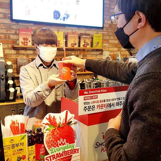 이마트24가 한 매장에서 두 개 가맹점을 운영함으로써 수익을 창출할 수 있는 혁신적인 모델을 선보인다. 이마트24는 스무디킹과의 협의를 통해 카운터 내 공간에서 스무디킹을 제조/판매 할 수 있는 모델을 개발해 가맹점 지원에 나선다.