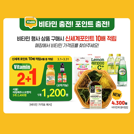 이마트24, 건강에 대한 관심 증가에 비타민/홍삼음료 등 웰빙상품 덤 증정!이마트24는 100여종의 웰빙상품에 대해 1+1, 2+1, 덤 증정 등 할인혜택을 제공한다. 이번 행사를 통해 비타민/홍삼음료, 레모나톡톡, 비타스틱 등 다양한 상품에 대해 덤증정 혜택을 누릴 수 있다.