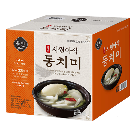 보도자료 신세계푸드, “겨울엔 동치미가 최고!”…’올반 시원아삭 동치미’ 출시 신세계푸드가 ‘올반 시원아삭 동치미’를 출시하며 겨울철 별미김치 시장 공략에 나섰다. 2020.12.15 신세계푸드