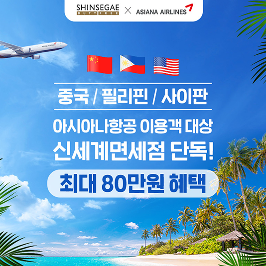 신세계면세점, 아시아나 항공 타고 떠나면 특별한 혜택 쏜다이제 해외 여행은 남쪽이다.