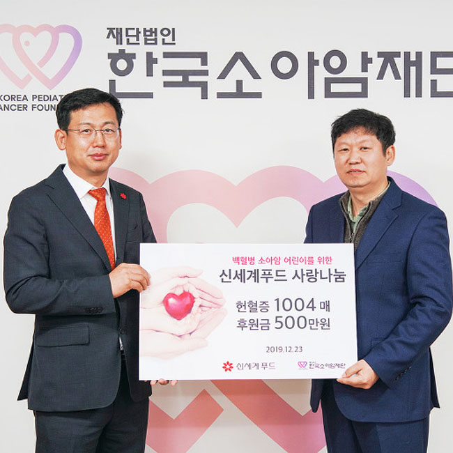신세계푸드가 소아암과 백혈병을 앓고 있는 어린이들을 위해 헌혈증과 후원금을 전달했다.