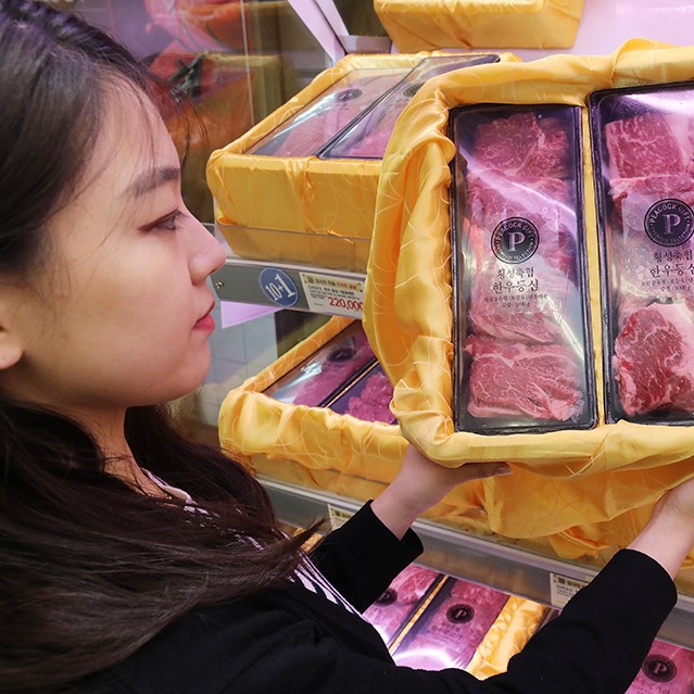 이마트, 올해 숙성 한우 <등심+채끝>매출의 80%/한우 전체매출의 20% 차지이마트가 한우 등심 가격을 올해 상반기 내내 동결하고, 숙성 한우에 대한 소비자의 선호도가 증가했다.