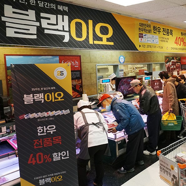 이마트, 한우데이 맞아 한우 전 품목 연중 최저가 수준 판매이마트는 2016년 말 경기도 광주 미트센터에 숙성 한우 창고를 만들어 축산 매장에 고기 두께를 2~3.7cm로 한 ‘스테이크 전용 매장’을 만들었다.
