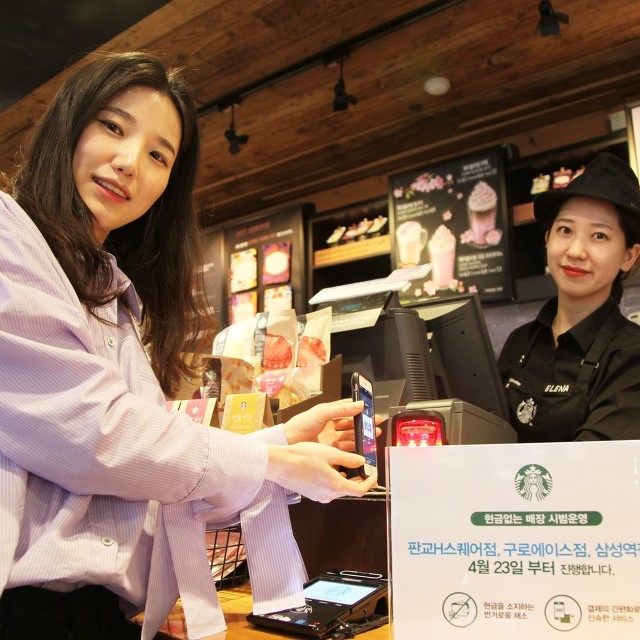㈜스타벅스커피 코리아가 판교H스퀘어점, 삼성역점, 구로에이스점 매장을 택해 4월23일부터 현금 거래 없는 매장 시범 운영에 들어간다.