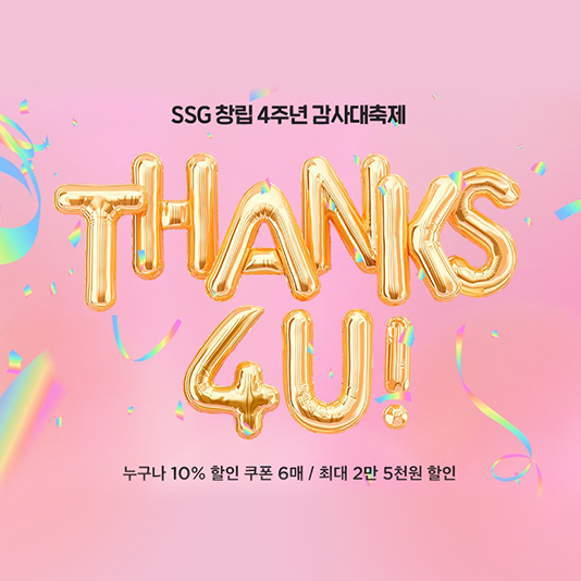 네 번째 생일 맞은 쓱닷컴이 쏜다SSG닷컴이 창립 4주년을 맞아 매일매일 색다른 쇼핑 축제를 펼친다. SSG닷컴은 19일까지 일주일간 창립 4주년을 기념하는 ‘Thanks 4U’ 프로모션을 진행한다고 13일 밝혔다.