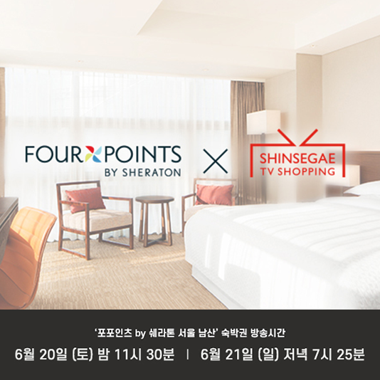 신세계TV쇼핑, 신세계조선호텔과 함께 ‘포포인츠 바이 쉐라톤’ 숙박권 판매 방송 진행신세계TV쇼핑이 오는 20일(토) 밤 11시 30분과 21일(일) 저녁 7시 25분 2회에 걸쳐 신세계조선호텔에서 운영하는 ‘포포인츠 바이 쉐라톤 서울 남산’의 숙박권 특집방송을 진행한다. 신세계TV쇼핑은 최근 코로나19 여파로 안전한 휴식에 대한 관심이 높아짐과 동시에, 다가오는 휴가 시즌과 명절 연휴 기간 ‘호캉스족’이 크게 증가할 것으로 예상됨에 따라 신세계조선호텔과 함께 이번 호텔 패키지 방송을 마련했다.
