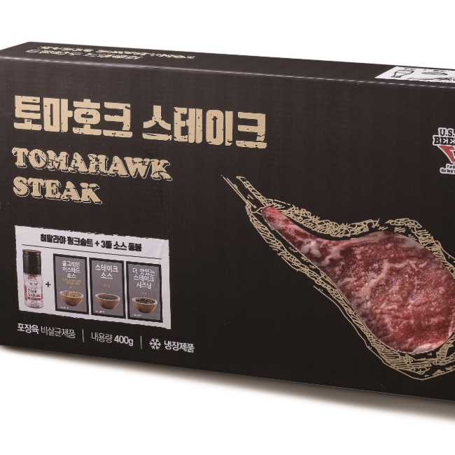 이마트에서 ‘BBQ 파티’ 준비하자! 캠핑시즌 맞아 스테이크 행사 열어우선 ‘토마호크 스테이크 세트’가 눈길을 끈다. 1팩에 1만9,800원(400g/미국산/냉장)으로 전용소스 3종과 히말라야 핑크솔트가 함께 포장되어 있는 것이 특징이다.