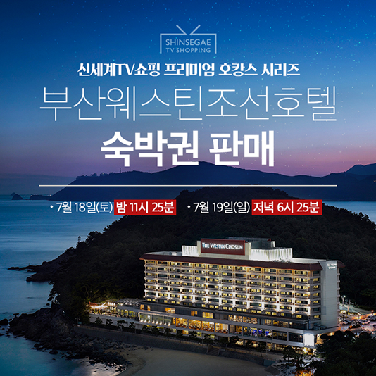 신세계TV쇼핑, 부산 웨스틴조선호텔 숙박권 단독 기획 ‘프리미엄 호캉스 시리즈’ 선보인다신세계TV쇼핑이 신세계조선호텔과 함께 ‘프리미엄 호캉스 시리즈’ 특별 방송을 선보이고, 특급호텔에서 도심 속 휴가를 즐기는 ‘럭셔리 스테이케이션(Stay-cation)족’ 사로잡기에 나선다.