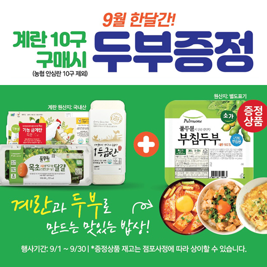 이마트24, 길어지는 집콕 라이프에 집밥 늘었다!외부 활동을 줄이고 집에서 지내는 시간이 늘어나면서 집에서 요리를 하는 고객들이 늘어나는 것으로 나타났다. 이마트24는 9월 한 달간 계란/삼겹살을 구매하면 두부를 증정하는 이색 식재료 덤증정 행사를 진행한다.