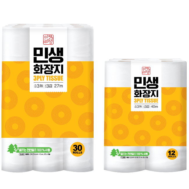 이마트24는 이달 8일(목) 민생화장지 27M*30롤(8,250원)과 40M*12롤(4,890원) 등 총 2종을 출시한다.