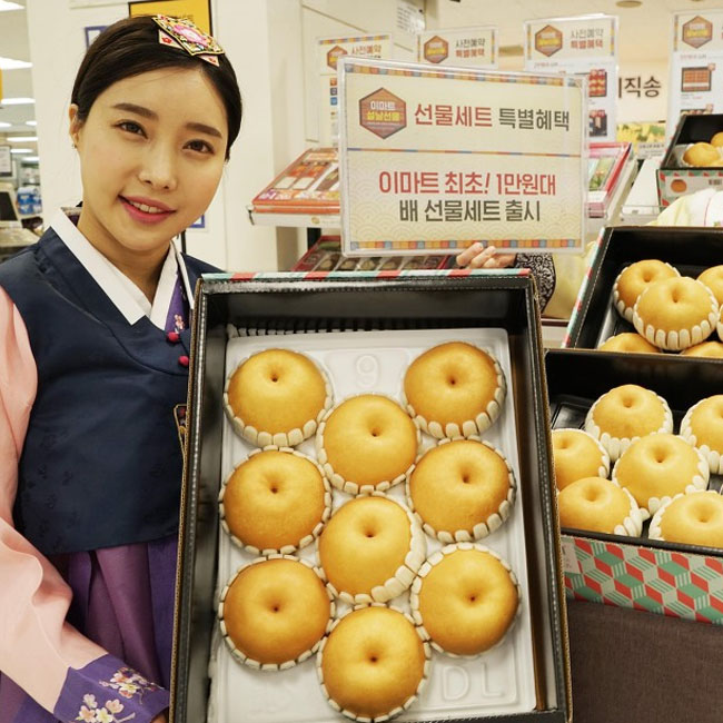 이마트는 중량을 5kg으로 낮춘 ‘당도선별 배 VIP 선물세트’와 ‘당도선별 배 GOLD 선물세트’를 각 19,800원/18,500원에 선보인다.