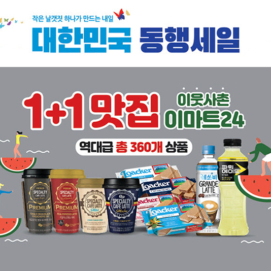 이마트24, 여름맞이 할인 행사 풍성이마트24가 7월 한달 간, 여름맞이 대규모 할인행사를 펼친다. 이마트24는 7월 한달 간, 총 1700여종 상품에 대해 1+1, 2+1, 덤증정 등 혜택을 제공하며, 특히 인기상품 360종에 대해 1+1 이벤트를 진행한다.