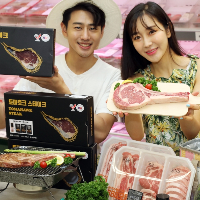 이마트는 과거 인디언들이 사용했던 돌도끼인 ‘토마호크’에서 유래한 ‘토마호크 스테이크 세트(400g/미국산/냉장)’를 1만9,800원에, ‘BBQ 돼지고기 모둠(1.5kg/팩/ 캐나다산/냉장)’을 2만4,800원에 판매한다.