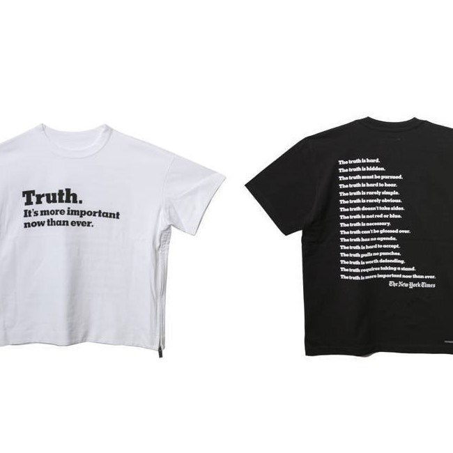 패션 브랜드 사카이는 이달 초 뉴욕 타임스의 ‘Truth(진실)’ 캠페인을 디자인에 반영한 협업 제품을 한정판으로 출시했다