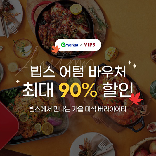 G마켓, 빕스 어텀 바우처 90% 단독 특가신세계그룹 계열 이커머스 G마켓과 옥션이 오는 15일까지 ‘빕스 1만5,000원 어텀 바우처’를 90% 할인한 1,500원에 단독 판매한다.