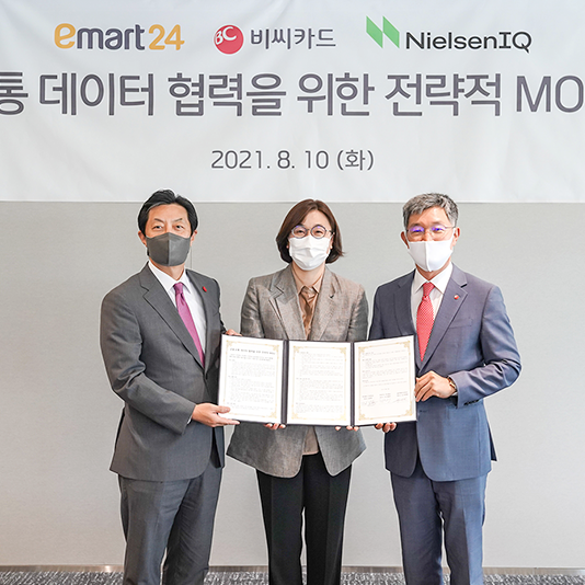이마트24-BC카드-닐슨컴퍼니코리아, 데이터 업무협약 체결!이마트24가 지난 10일(화, 어제) 오후 3시 서울 중구에 위치한 BC카드 본사 BC홀에서 BC카드, 닐슨컴퍼니코리아와 함께 데이터 상호협력을 위한 업무협약(MOU)을 체결했다. 이날 협약식에는 이마트24 김장욱 대표이사, BC카드 최원석 대표이사, 닐슨컴퍼니코리아 최경희 대표이사 등 3사의 대표이사 및 관계자가 참석해, 각 사가 보유한 데이터 및 분석 역량을 활용하는 방안에 대해 의견을 나누는 시간을 가졌다.