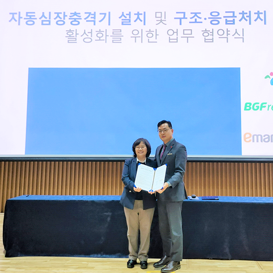 이마트24, 서울시 자동심장충격기 설치 업무협약 참여!이마트24가 지난 2일(목) 오후 2시, 서울시청에서 서울시 ‘편의점 자동심장충격기 설치 확대 및 구조∙응급처치교육 활성화 업무협약'(이하 MOU)에 참여했다.