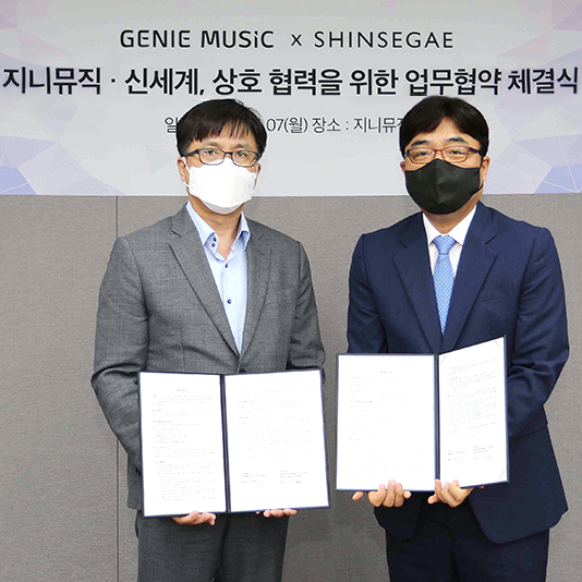 신세계百, 지니뮤직 손잡고 쇼핑에 음악을 더한다신세계백화점은 지난 7일 지니뮤직 본사에서 상호 협력을 위한 업무협약(MOU)를 체결했다. 양사는 앞으로 협업을 통해 온·오프라인에서 다양한 융합 마케팅을 선보일 예정이다.