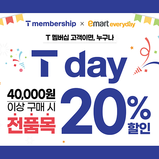 ㈜이마트에브리데이(대표이사 김성영)가 6월 5일부터 10일까지 SK텔레콤의 멤버십 회원 대상 프로모션 6월 ‘T데이’ 행사에 참여해 20% 할인 혜택을 제공한다.