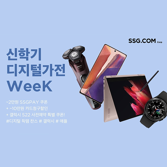SSG닷컴 ‘신학기 디지털 가전 위크’SSG닷컴이 ‘디지털 가전 행사’와 한정판 스니커즈를 대표 상품으로 내세운 ‘럭키 드로우 이벤트’를 동시에 열고 새 학기 개강을 앞둔 MZ세대 고객 잡기에 속도를 낸다.