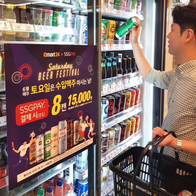 이마트24는 경기 전일 15일(토)에 한해 수입맥주 16캔을 SSG페이로 결제 시 3만 원에 구매할 수 있는 비어 페스티벌을 진행한다.2019.06.14 -
