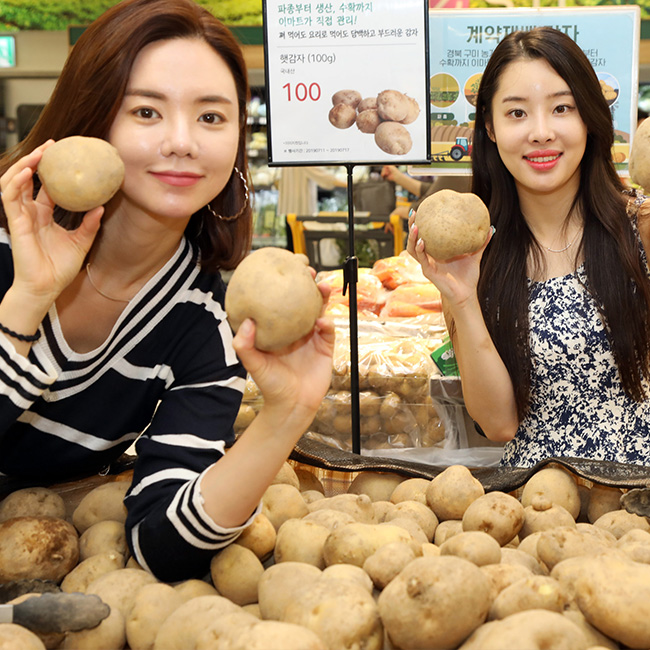 이마트, 국내산 햇감자가 100g에 100원! 7월 11일(목)부터 17일(수)까지이마트가 오는 7월 11일(목)부터 17일(수)까지 국내산 햇감자를 정상가 대비 절반 이하 수준인 100g당 100원에 판매한다. 기존 정상가가 100g당 298원이었던 것과 비교했을 때 거의 1/3 수준이다.