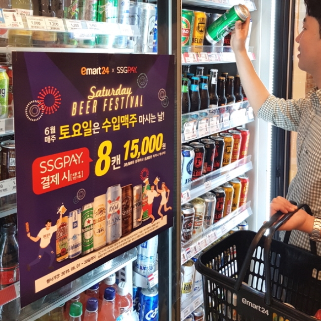 이마트24는 경기 전일 15일(토)에 한해 수입맥주 16캔을 SSG페이로 결제 시 3만 원에 구매할 수 있는 비어 페스티벌을 진행한다.2019.06.14 -
