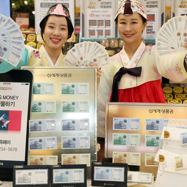 어느새 설이 코앞, 올 설 선물은 신세계 상품권으로!이마트는 전국 이마트 점포에서 신세계 상품권을 판매하며, 1,000만원 이상 구매 고객에게는 금액대별로 상품권을 추가 증정한다.
