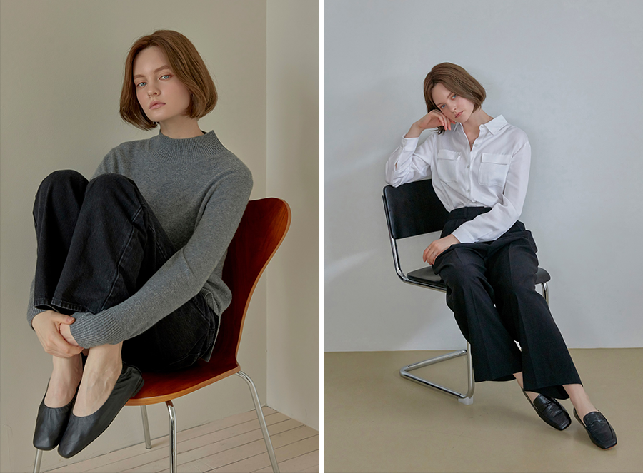 마스터핏 슈즈는 심플하면서 디테일 요소에 차별점을 둔 총 네 가지 스타일로 출시돼 취향에 따라 선택할 수 있다. 슈즈 앞 부분이 뾰족하게 각이 진 스퀘어 토 가죽 슈즈와 착화감을 극대화 한 쿠션 레더 로퍼, 최근 큰 인기를 끌고 있는 셔링(주름) 플랫 슈즈는 앞 코가 둥근 스타일과 각진 스타일로 각각 출시된다. 색상은 블랙, 베이지, 아이보리, 와인까지 다양하다.