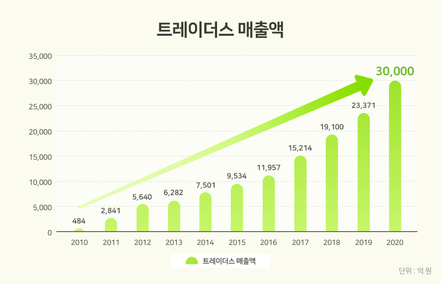 매출 규모도 상당하다. 지난해 처음으로 총 매출액 2조 원을 넘어선 트레이더스는 올해는 3분기 만에 총 매출액 2조 원을 달성했다. 3조 원 달성도 멀지 않아 보인다.