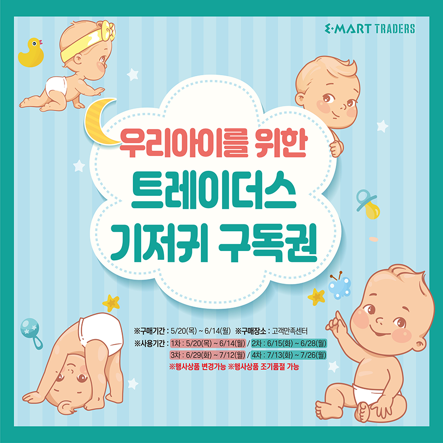 트레이더스가 매일 사용하는 기저귀를 저렴하게 구매할 수 있는 ‘기저귀 구독권’을 1만장 한정 수량으로 선보인다.